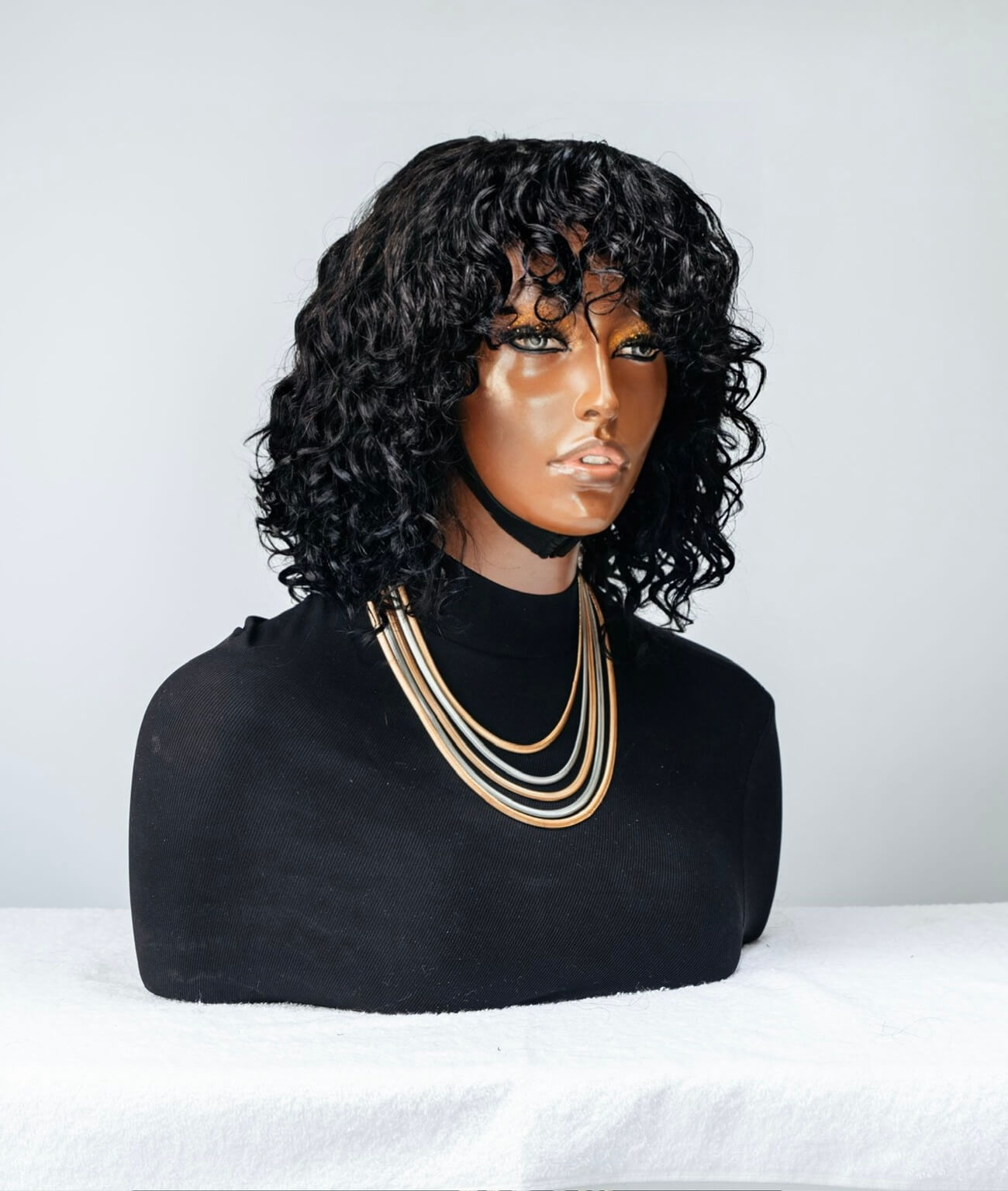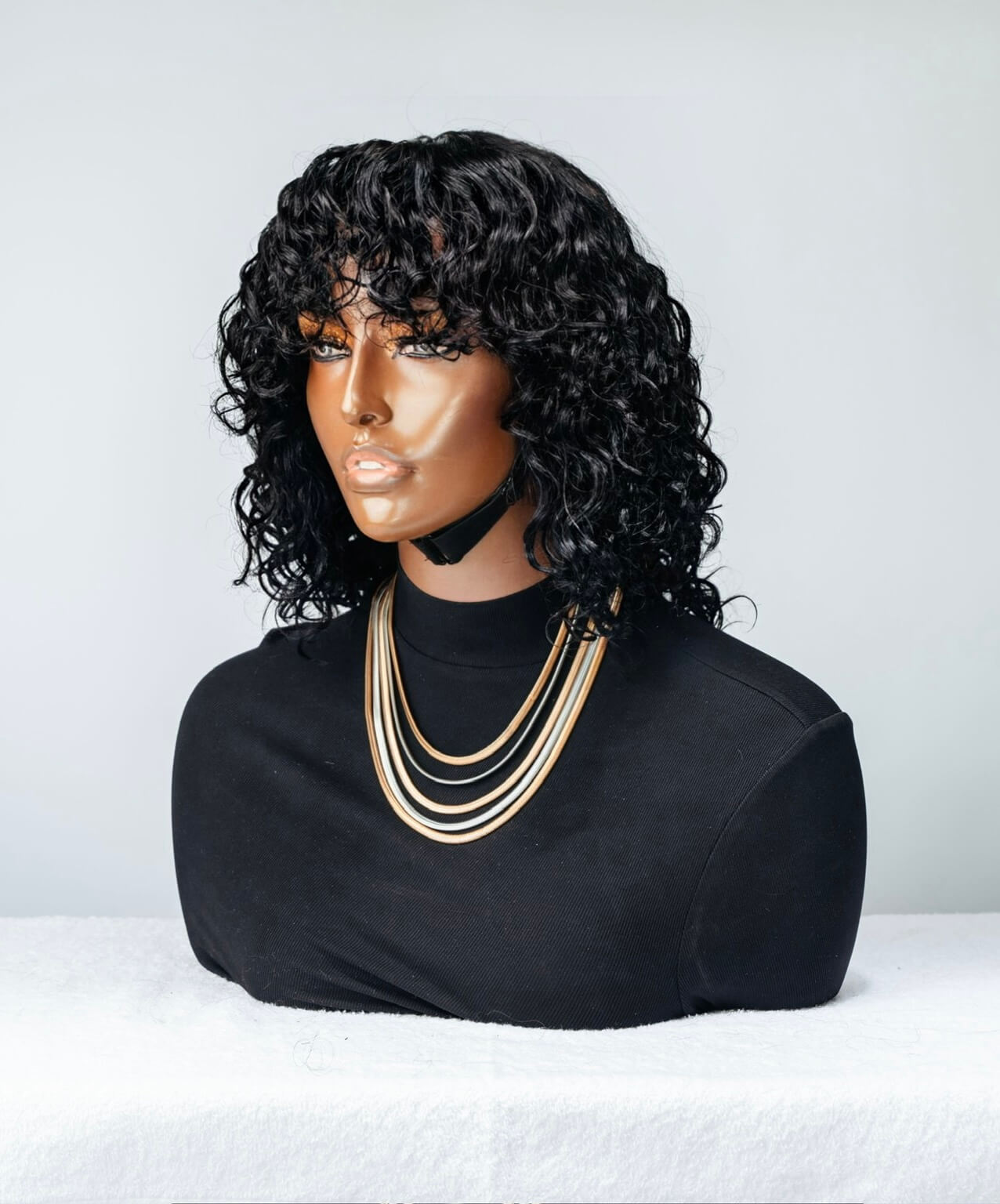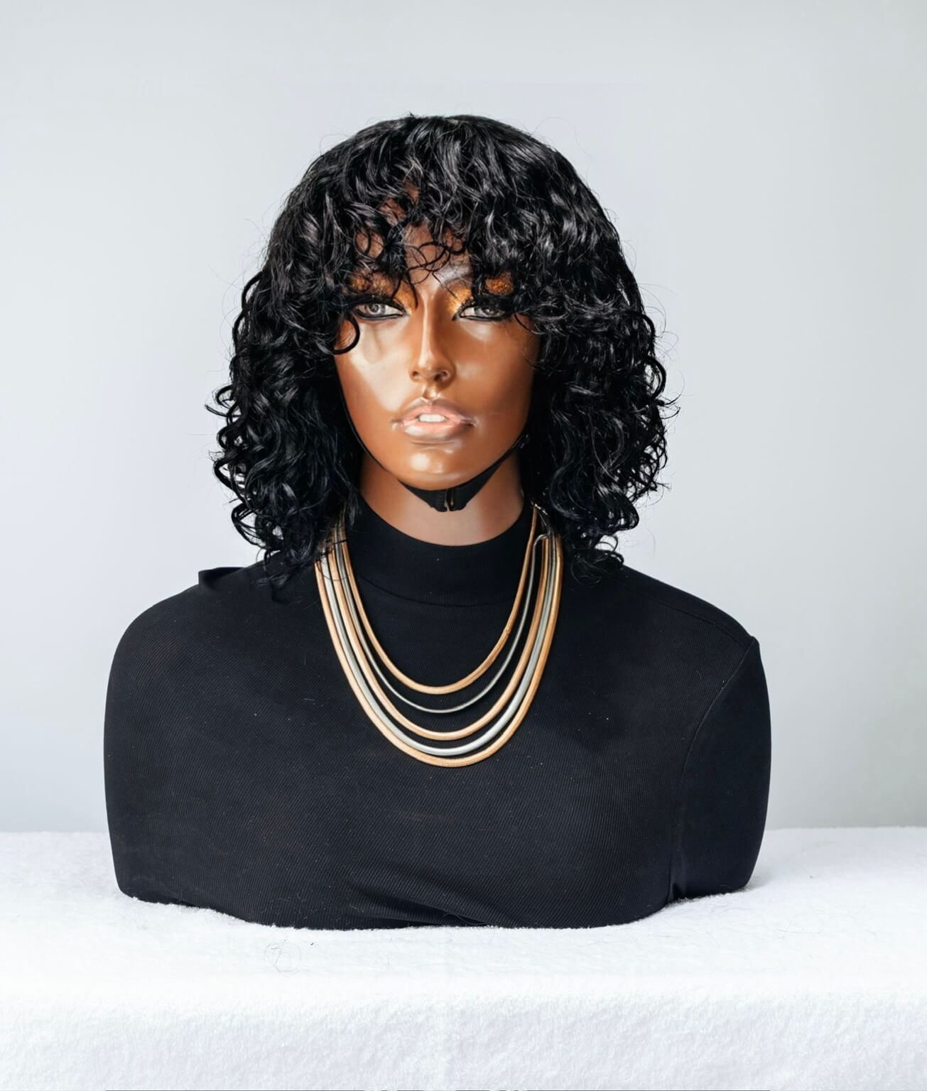The water wave fringe wig is a curly unit. IT's a glueless Malaysian wig and a timeless hairstyle that brings a touch of retro glam to any look popularly known for their tight, bouncy curls and voluminous appearance. It's available in long curly wigs options from 18-inches and in 22-inches. The water wave texture is similar to a body wave texture, keeping the wig curls deep and strong after maintenance with the help of a weave care product. The wigs come as ready to wear, with the knots of the frontal prep lucked and bleached to create a more natural hair line, can be worn as a glueless wig or with any of our safe lace frontal glue or gel options. . Our curly wigs have the various options of 4×4 lace closure and an ear-to-ear customized lace frontal wig. It is available in a natural (black) colour and brown with highlights.